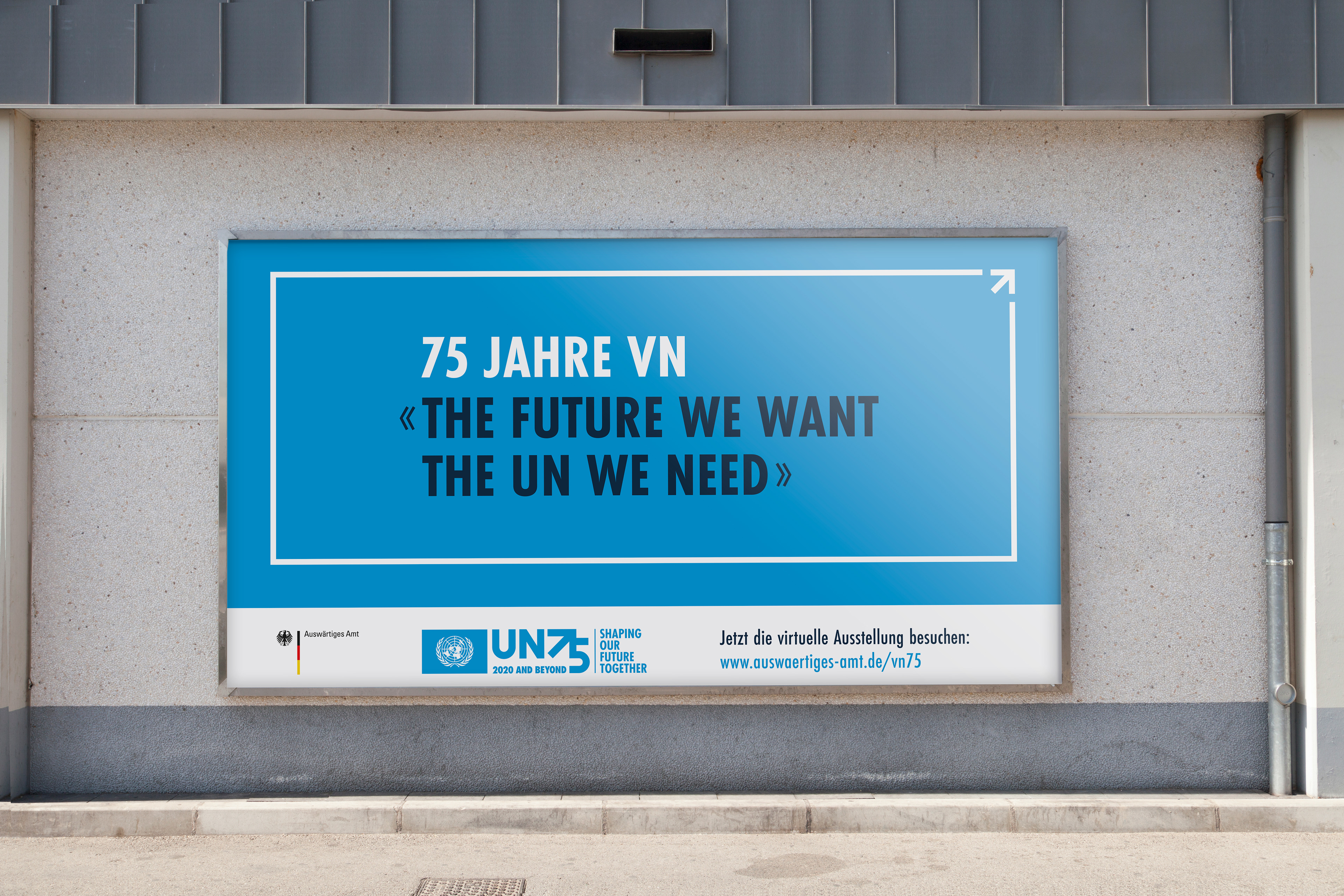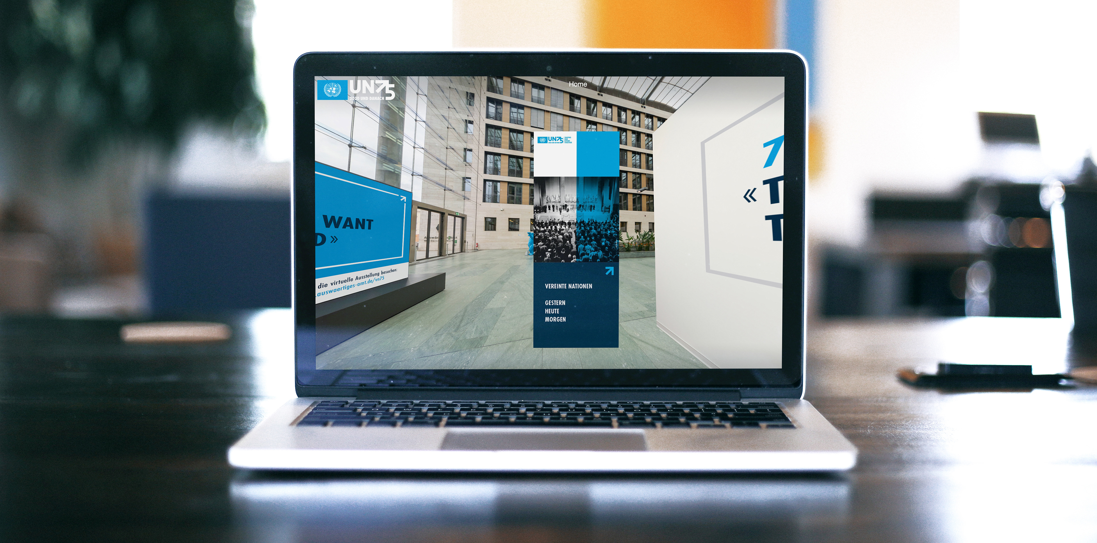 Das 75 jährige Jubiläum der vereinten Nationen sollte in einer Ausstellung mit dem Titel „The future we want, the United Nations we need“ im Lichthof des Auswärtigen Amtes real stattfinden. Da das Coronavirus diesem Vorhaben einen Strich durch die Rechnung gemacht hat, durften wir eine virtuelle Ausstellung im Lichthof des Auswärtigen Amt inszenieren. So wurde eine Kombination aus Realität und virtueller Welt geschaffen, die nun für jeden weltweit zur Verfügung steht. Das Thema Vereinte Nationen und deren Geschichte anschaulich und informativ darstellt und erlebbar macht.